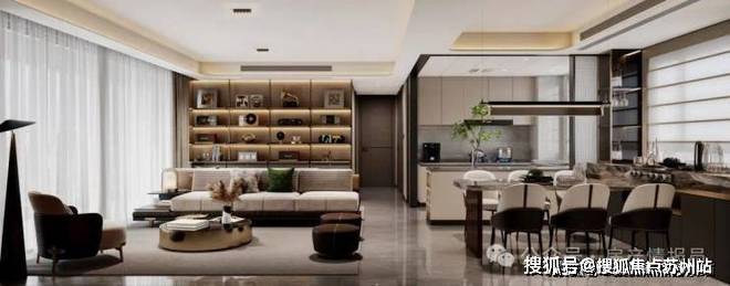》半开放式厨房,可开合移门+互动岛台,增加厨房的社交性