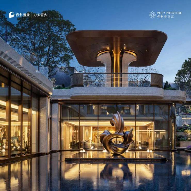 公区:保利顶豪精装双入户大堂、全冠移植立体滨江度假园林、风雨连廊、架空层泛会所、保利 24 小时一对一专属管家服务