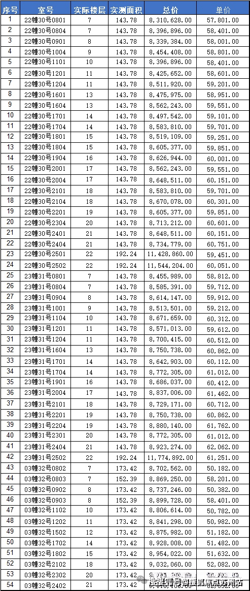 一房一价表