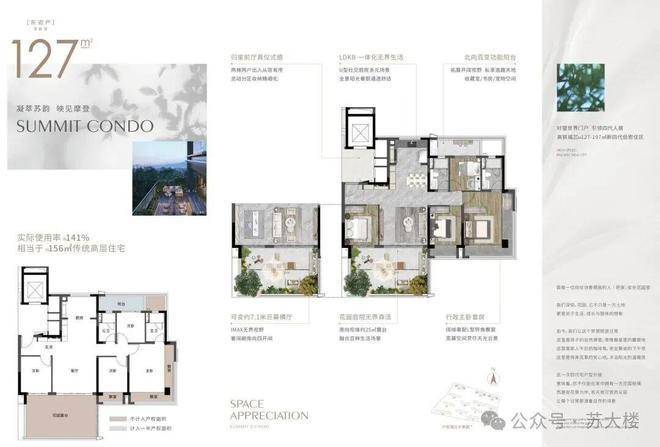 实际使用面积相当于传统住宅156㎡传统高层住宅
