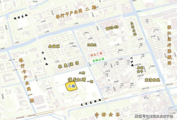 浦发虹湾,位于龙东大道和华东路的交汇处,所处的整个区域,四面环水,就如同一座漂浮在水面上的“环屿之城”.