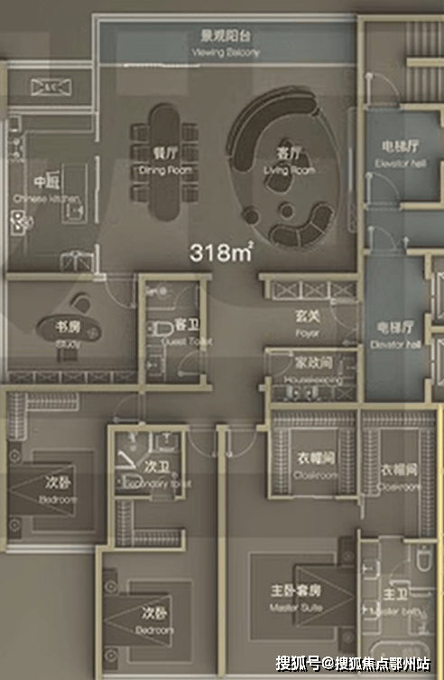 高区建面约318㎡四室两厅三卫