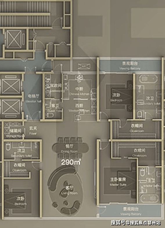 高区建面约290㎡三室两厅四卫