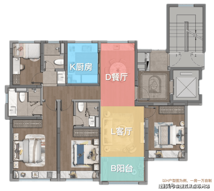 户户独享的“国土边界”,独立的楼梯厅+电梯厅,相当于把一辆保时捷放在家门口。