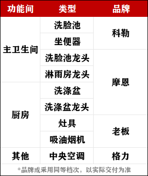 均选取了国际一线品牌作为交付标准,比如厨房用了老板(或同档次品牌)的灶具和吸油烟机,卫生间用了科勒(或同档次品牌)的洗脸池和坐便器,同档次的品牌在约500万以内的项目并不多见。