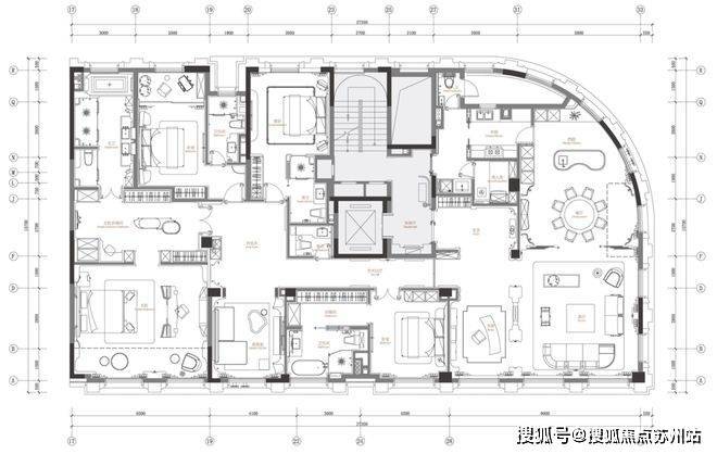 地块的四个角落天然呈现弧度,而建筑设计巧妙顺应这一自然禀赋,刻意打造流畅的曲线轮廓,讲究的是"玉带环腰"的东方美学意境,让气场流转不滞,福祉绵延不绝!