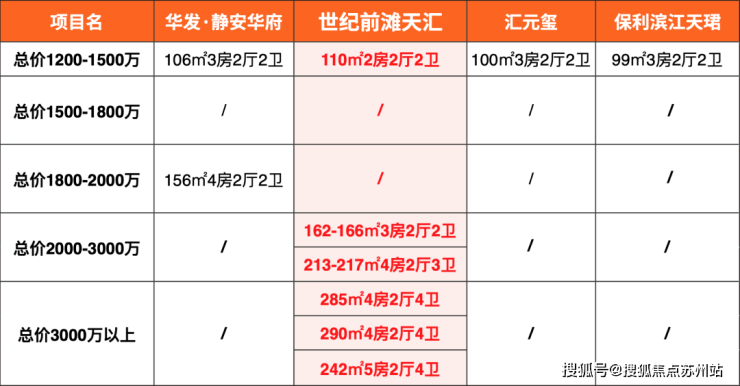世纪前滩天汇大户型在十批次几乎没有竞品,小户型竞争激烈,或存在捡漏可能。