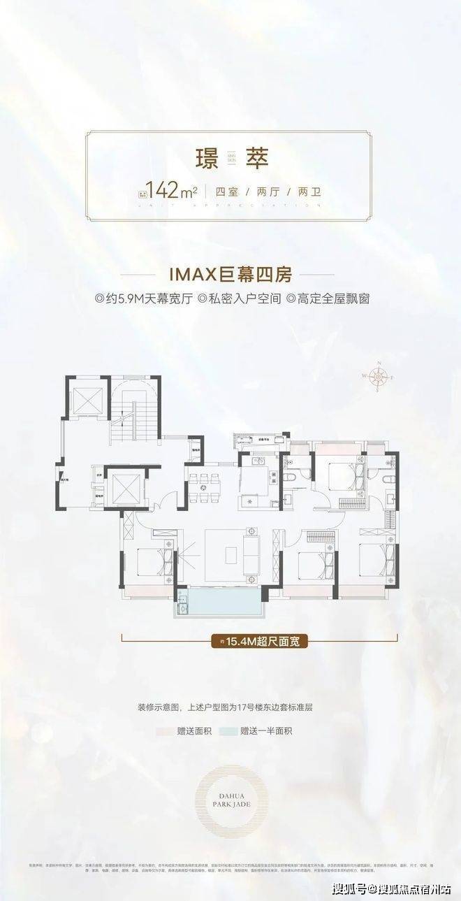 真正一步到位的改善型4房产品,大横厅的设计,四开间朝南+大横厅,约15.4米的南向面宽堪比别墅。