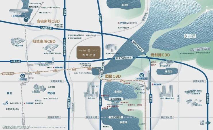 出门就是中环北线、太阳路高架等主干道,未来阳澄湖星济隧道通车后,一脚油门就能到园区湖西。更关键的是,项目紧邻在建的地铁8号线古香圩站,能和1、2号线轻松换乘,无论是开车还是坐地铁,全城通达无压力,为您的低密墅居生活提供了极大的交通便利。