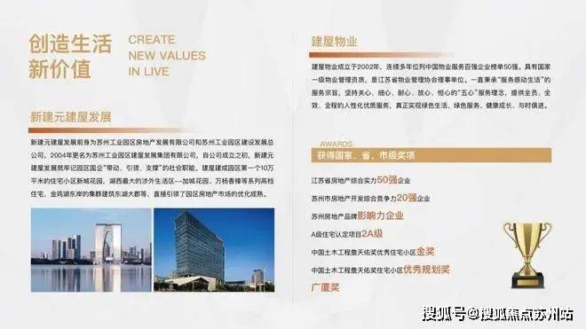 项目开发商实力雄厚,本土房企更重注品质和口碑。新建元建屋发展隶属于园区管委会,是江苏省房地产综合实力50强企业。截止目前累计开发面积880余万平方米,资产规模达161亿元。