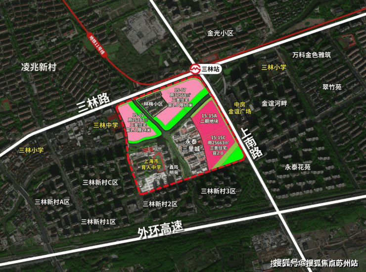 项目所处的位置是超30万方河滨大城,将打造成三林的新地标。二期地块位于一期东侧,即 15-15A地块。