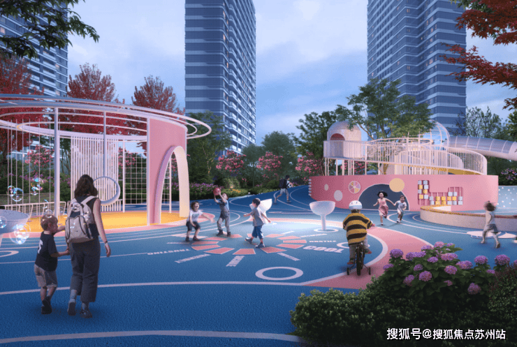 五大功能主题组团:1、儿童游乐功能的拾梦星球主题组团,2个分年龄段近1000平米的儿童乐园,配有林下休憩座椅、婴儿车停放、捕蚊灯、洗手池、直饮水等人性关怀设施。2、运动、健身功能的星系能量主题组团,除健康跑道外,还有楼宇间约1000㎡的综合健身场地,配备了健身器械、可移动的乒乓球场、羽毛球场及休息座椅等。3、生态、康养功能的星光幻影主题组团:包含利用海绵城市缓解热岛效应、利于小区生态的良性循环的微气候花园;自然生态、植物认知的雨水花园;通过绿化组团围合设有棋牌桌、健身设施及林下休闲座椅约4000㎡自然氧吧的长者花园。4、邻里交流、会客亲友功能的璀璨星空主题组团:设有林下弧形长桌、高脚椅,用于共同阅读、学习交流的林下空间;用于饭后小憩、邻里互动,2处分别约1200㎡的阳光大草坪;整个小区内部人行动线上多处下沉式卡座等用于交流的邻里私享花园5、萌宠星球(宠物乐园):为有宠物的业主,通过植物、围挡围合打造了萌宠专属的乐园。