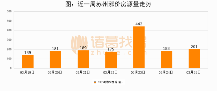 根据诸葛找房数据显示,苏州24小时涨价房源量为201套,较03月24日增加18套,环比上涨9.8%。与此同时,涨价房源占比小幅扩大,业主信心有所提升。