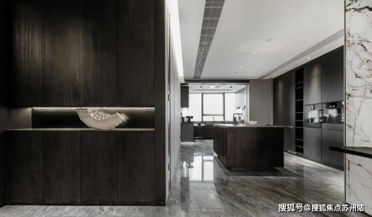 约450㎡“香奈儿”西边套,将原本多见于餐桌和墙面的白金沙奢石,漫铺于双厅地面之上。浅淡得宜的洁白,温润如玉的蜜色,将空间衬得时髦优雅。能眺望钱江两岸的梦幻天际线,“宇宙中心”奥体尽收眼底,也能俯瞰城市霓虹,车水马龙就在脚下。整个中心的璀璨世界定格在落地窗前,像一张巨幅明信片。