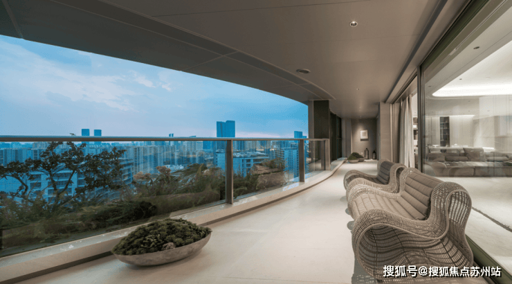 拥有270°的风景是怎样的体验?最小阳台也超11米长;最大阳台在东边套,近17米长。主流进深约2米,最深处约3.5米。这约30㎡的阳台,完全媲美当年蓝色钱江一线江景大宅17米长的传奇阳台。每个阳台均一半幕墙封闭,一半敞开,既舒爽透气又可避风寒。