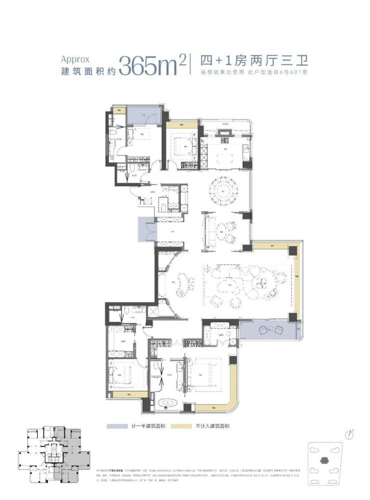建面约238㎡四房三卫全景舱户型,全屋约46米全景采光周长,客厅打造连续约17米三面采光界面,成就IMAX级环幕视野,搭配3.45米奢阔层高,让自然光无死角渗透;朝南双主卧套房搭配全屋六大系统化收纳空间,兼顾家族居住的私密性。