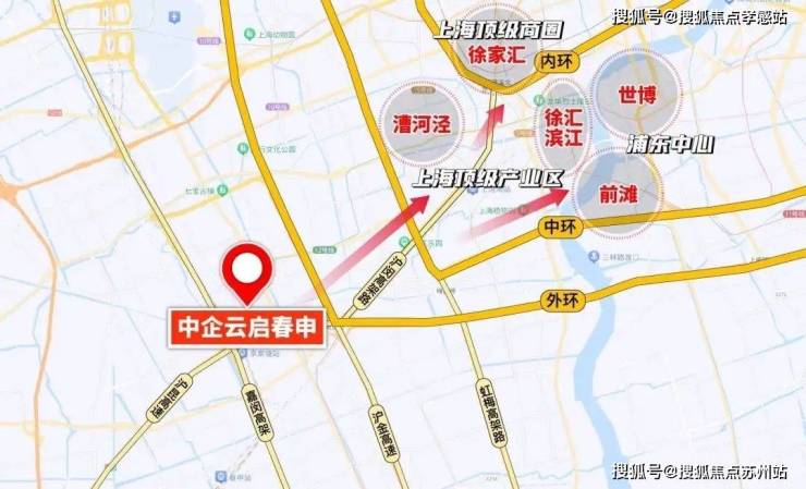 往北是七宝虹桥、往西是漕河泾、徐家汇、徐汇滨江、前滩世博浦东主中心,往南是颛桥、紫竹、往西是G60科创走廊。