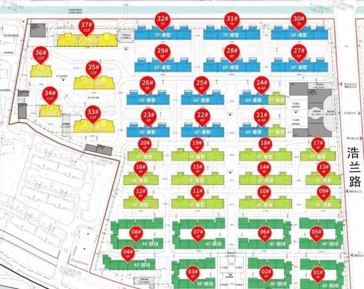 其中:02-09地块,占地面积约9.9万方,容积率1.01,由5幢11F小高层住宅、32幢4-7F多层住宅以及若干社区配套用房组成,共计规划约656套可售住宅;