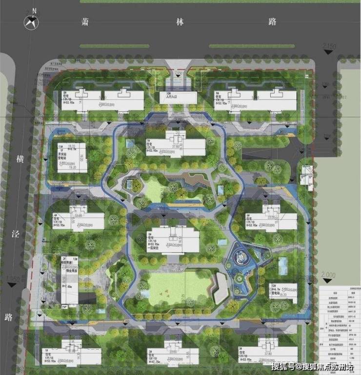 采用中国传统的中轴对称的规划格局,仪式感十足,突显豪宅的高贵气质。按照轴线及楼 栋自然形成四大模板,打造一步一景的景观节点,营造现代高端生活美学。