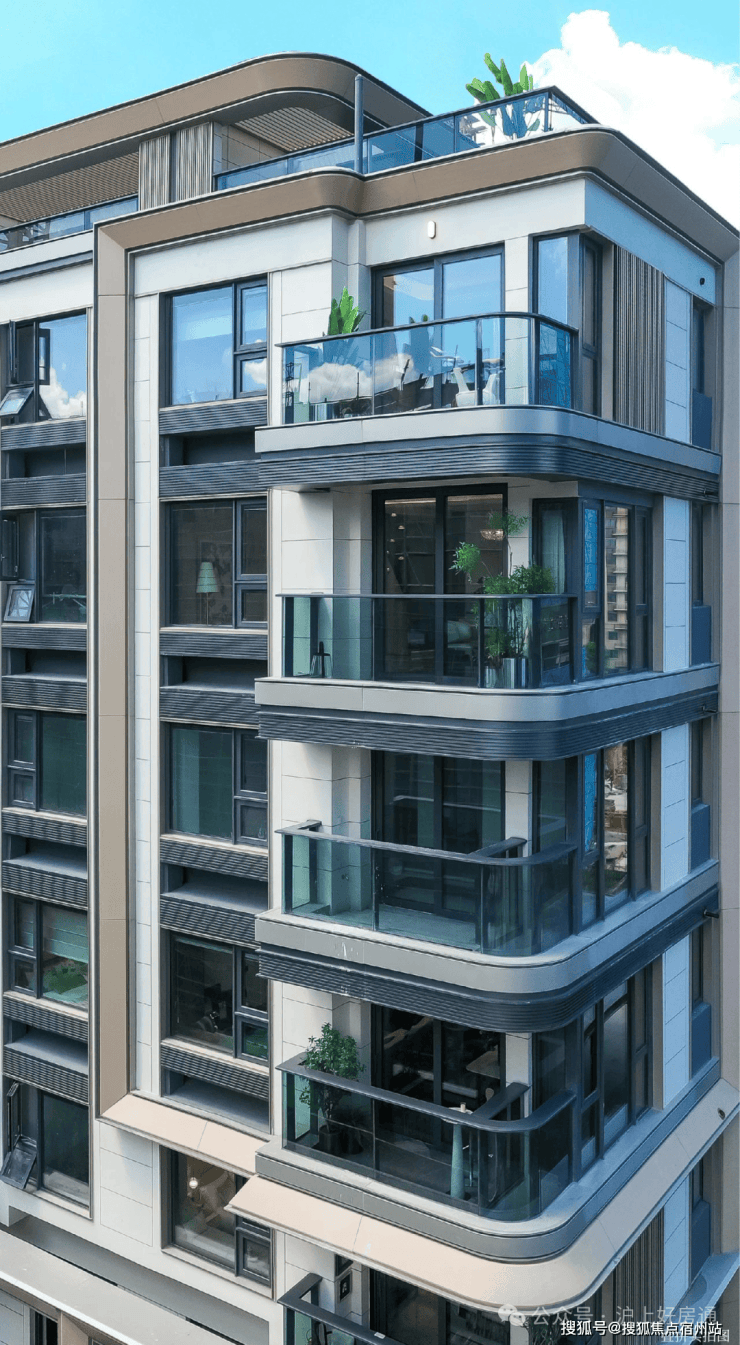 招商臻境立面通过曲线微弧、丰富层次以及高级的质感,交织融合彰显上海格调.