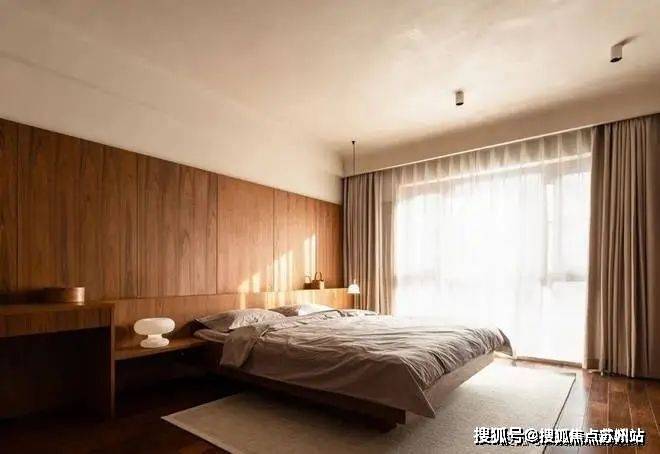 主卧干净明亮,顶面很平整,奶油色的乳胶漆。