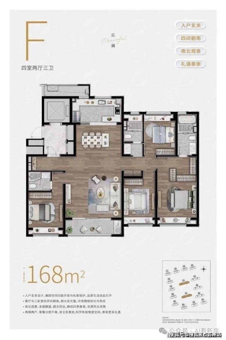 F户型:建面约168㎡4房2厅3卫▼陆家嘴.锦绣云澜售楼处电话:400-8228-664售楼处电话✔✔
