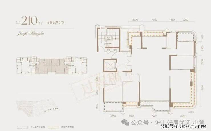 经过专业建筑师测算,该户型的客厅南向开间达到3.9米,入户门到公卫的距离足足5.35米。