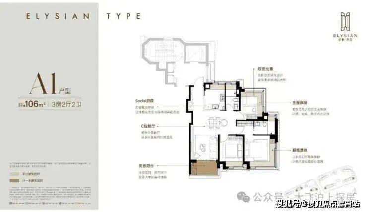 南北两个房间都做到270°飘窗,采光和景观面极其优秀。