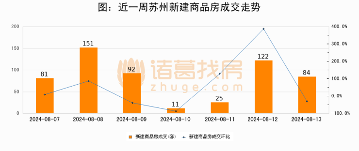 【苏州成交日报】08月13日新房成交84套、二手房226套;涨价房源108套
