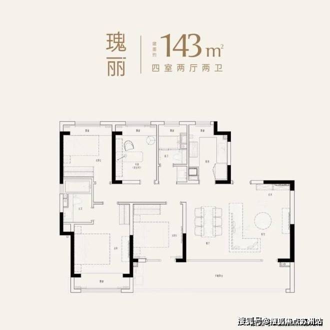 建面约143㎡,四房两厅两卫