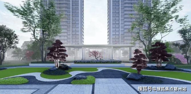 海棠花中央水境:汲取海棠花灵感,高规格配置中央景观水池及休憩平台、对称树池等配套节点,流水潺潺,舒享尊贵生活体验。