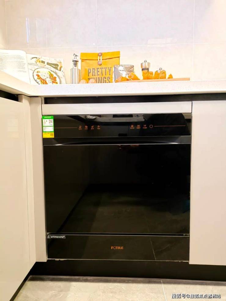 在厨房配置了定制款欧派橱柜,油烟机、燃气灶选用国际知名品牌方太,还有科勒的台盆加抽拉式龙头,甚至方太的洗碗机,也是在交付标准内;