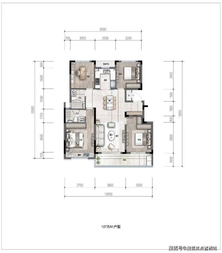 经典的四叶草格局。这种户型的优势是“消灭过道”,把面积极致利用。另外,因为4个功能间居于四角,且南北通透,对私密性的维护也和当下社会注重隐私的需求不谋而合。