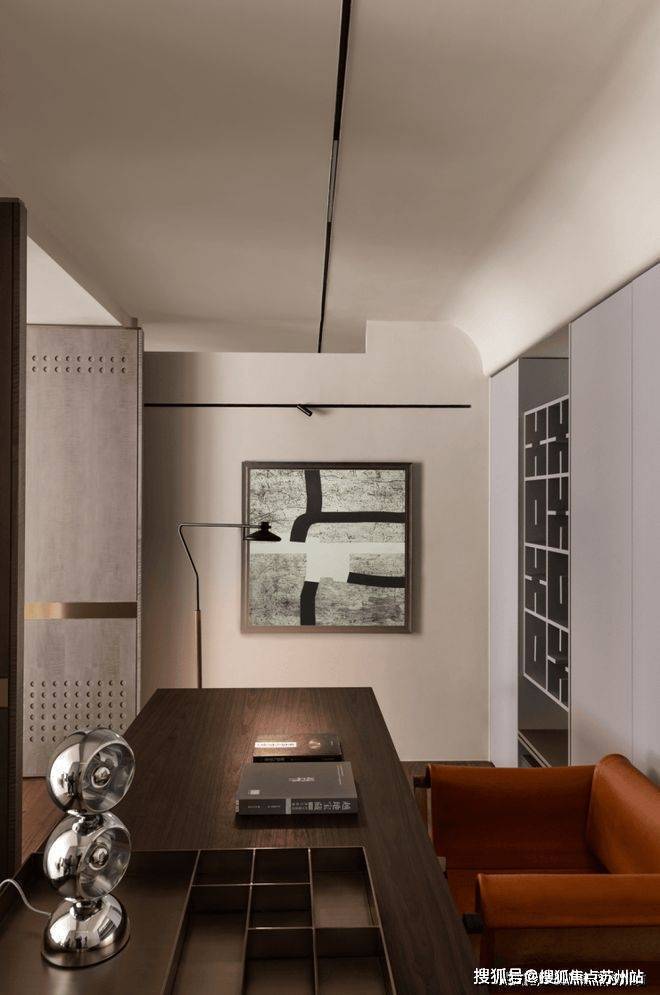 如果说餐厨是一家人的阳光与热闹,那么书房就是一个人的沉浸与关照。设计师借由光引导空间和情绪转折,通过隔断、错落等手法,演绎动与静,功能与艺术的平衡美。