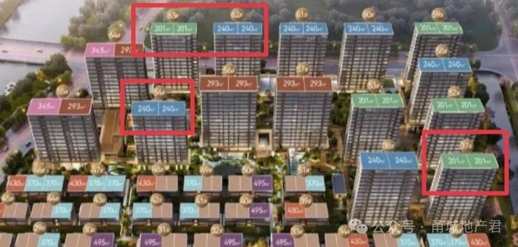 首开高层为37/54/62/63#号楼,共115套,户型面积为201/240平,单价1.6-2.66万/平。