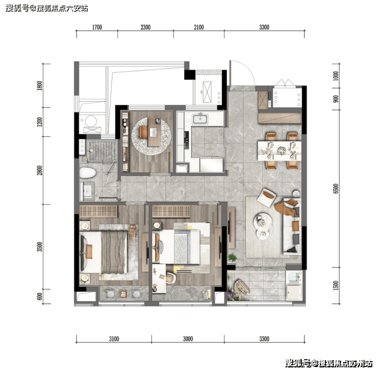 三卧朝南实现“阳光平权”,LDKG一体化公区+双阳台,兼顾景观与实用。