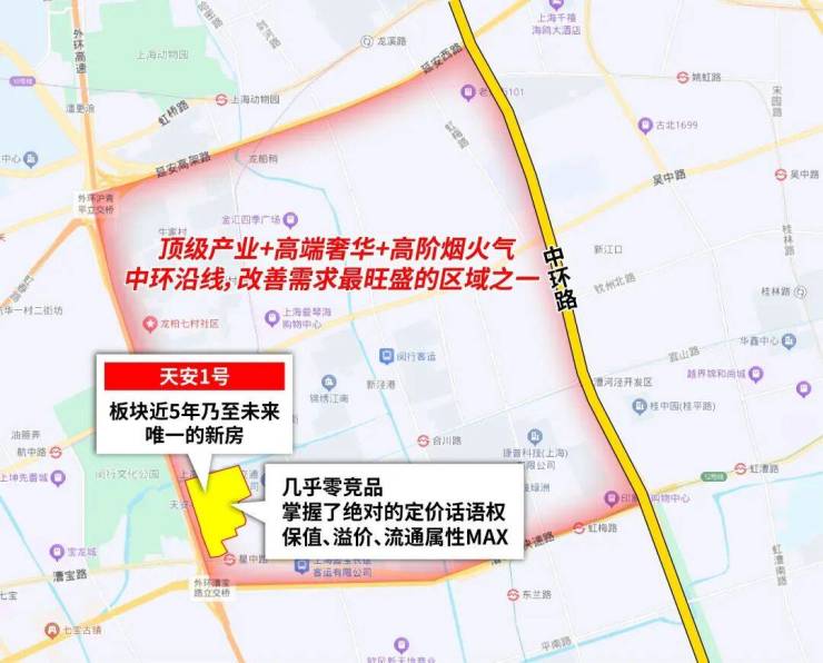 那天安1号所在的中环漕河泾漕宝路沿线,就代表着上海已然成熟的地段巅峰: