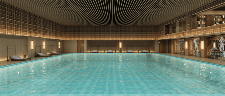 但在天安1号的会所中,拥有的是挑空两层的泳池,尺度感超强,营造出堪比专业赛事级场馆的空间感受。