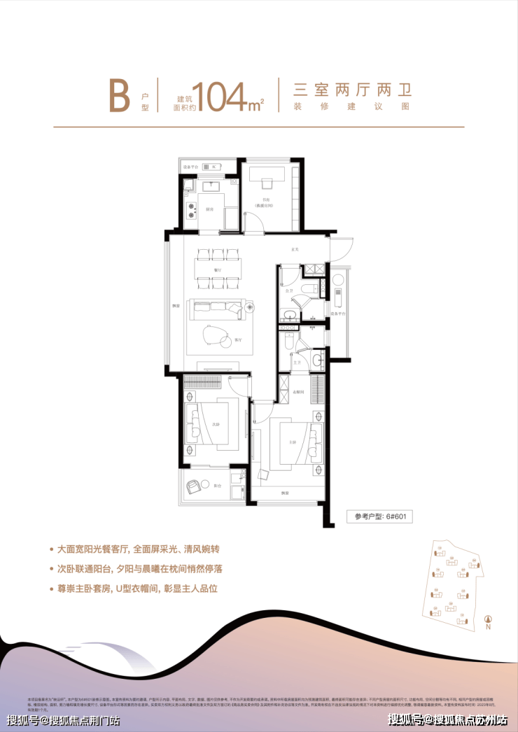 建面约104㎡则做了市面上罕见的小户型边套设计。