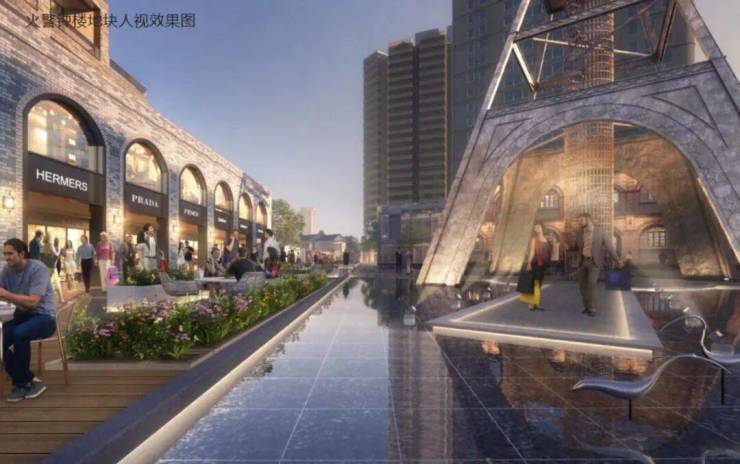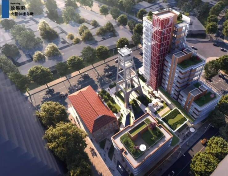 以火警钟楼和救火联合会为文化融合的起点,同时作为面向中华路的门户。