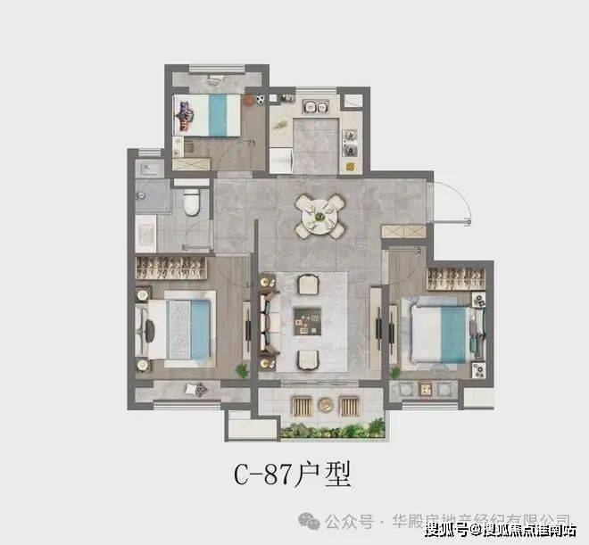 四开间朝南+主卧套房设计+全卧室带飘窗+南北通透+超大的宽面阳台,做出了拥有120㎡以上户型的尺度感和舒适度。如果预算合适,这个户型绝对推荐。