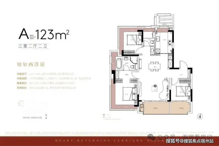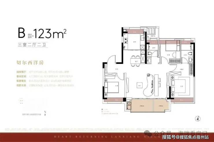 建面约123㎡洋房,分为横厅与竖厅两种户型。