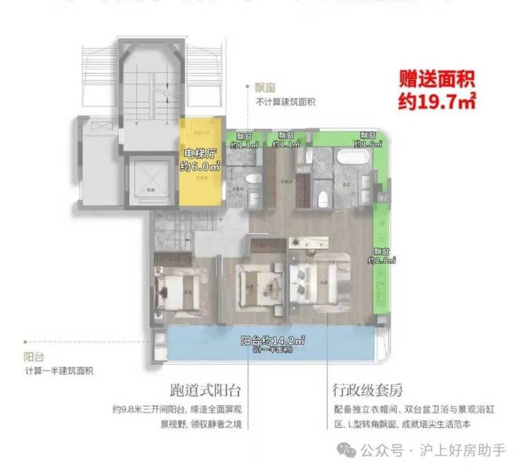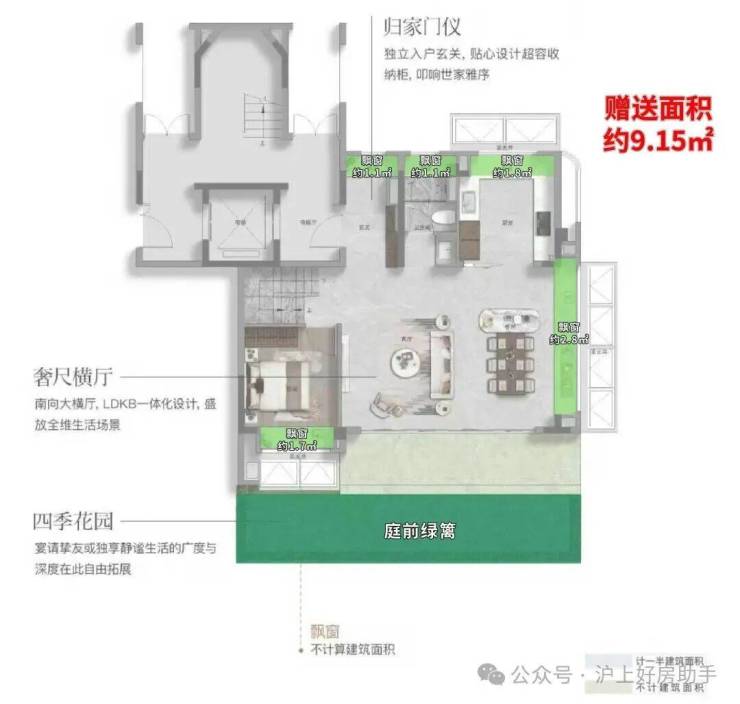 这个户型的附赠率,更高!实际可使用面积高达约234㎡,实得率超139%!