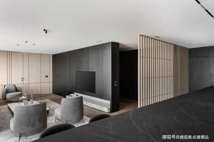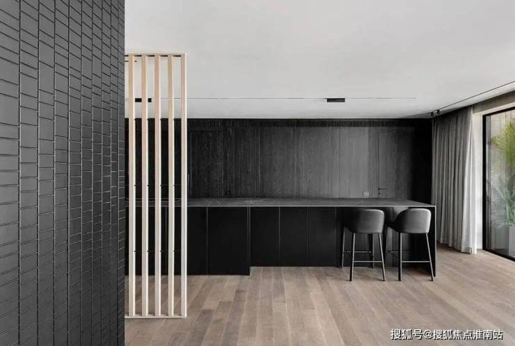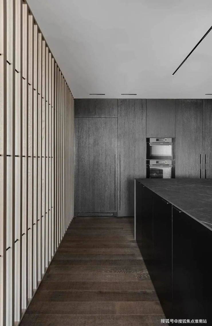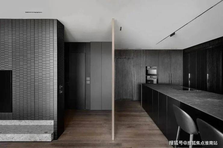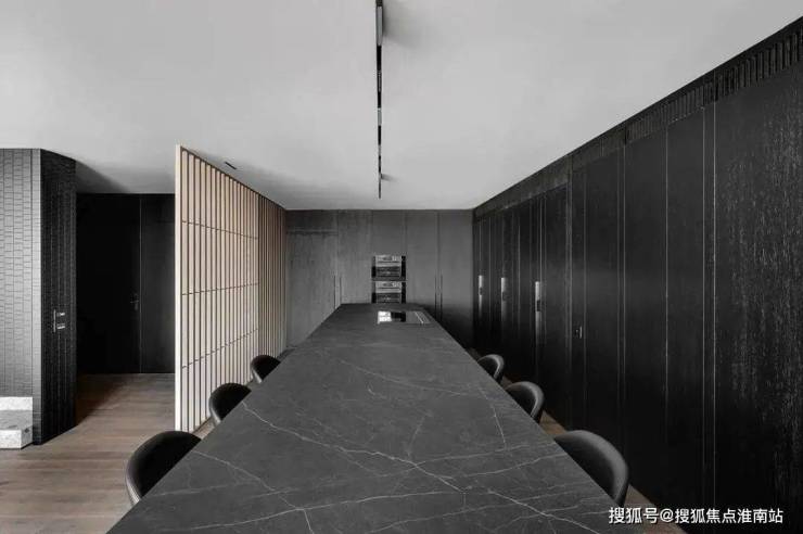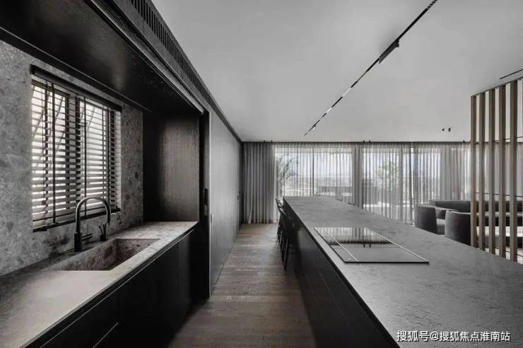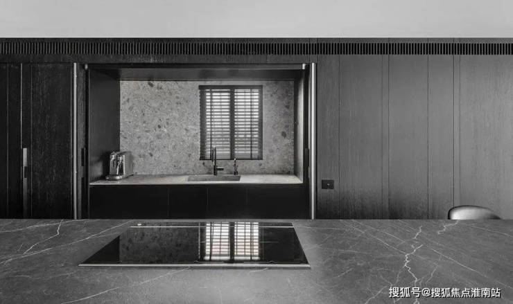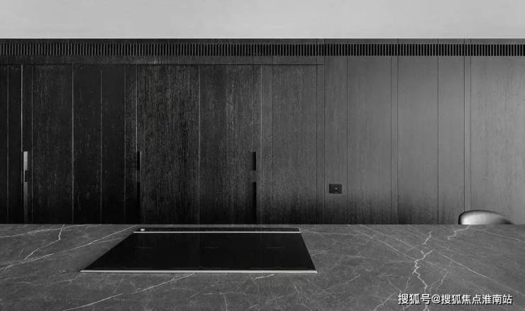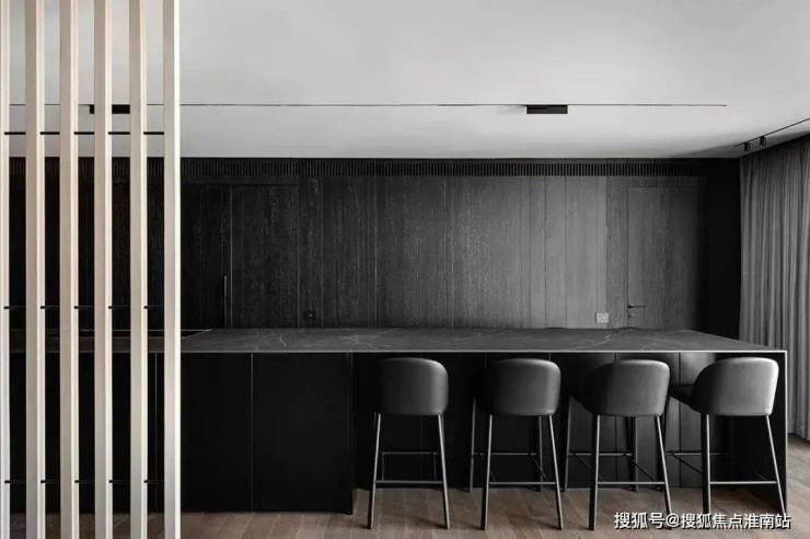 The restaurant is located next to the kitchen, cleverly incorporating natural textures and minimalist shapes, creating a simple and exquisite dining environment. The central island platform is closely connected to the dining table, and the delicate texture on the black marble adds a restrained and atmospheric atmosphere to the dining space. This design creates a comfortable, elegant, and modern dining environment for people, allowing them to taste delicious food while also feeling the warmth and comfort of home.