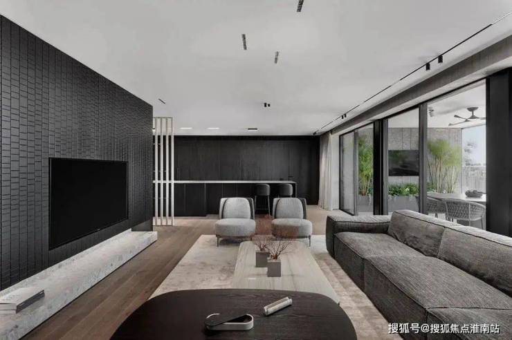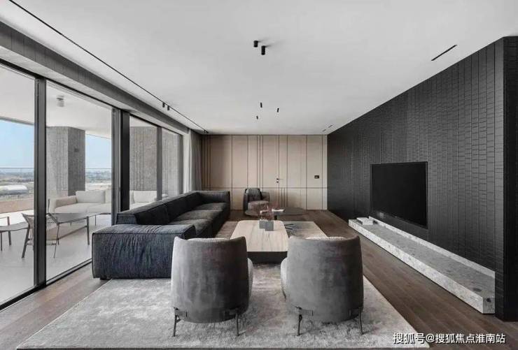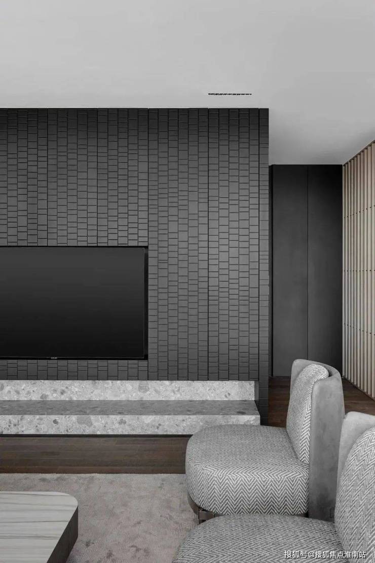 走进这个客厅,您会被它独特的简约轻奢气息所吸引。开放式设计能够将室外的美景尽收眼底,同时还能享受到宽敞的空间感。主要配色以白色和浅灰色为主,这两种颜色相互映衬,营造出一种清新、淡雅的氛围。在客厅的中心位置,摆放着一张灰色布艺沙发,它与天然石材茶几相得益彰。布艺沙发柔软舒适,让您在疲惫的工作后能够放松身心。而天然石材茶几则散发出一种自然的气息,与周围的环境融为一体。在电视墙的设计上,采用了黑色的背景与温润的米色相搭配,这种鲜明的对比不仅凸显了空间的层次感,还增添了一丝神秘气息。