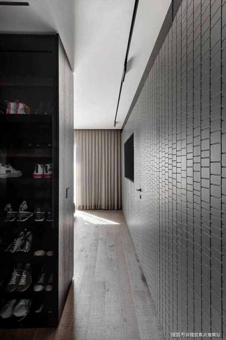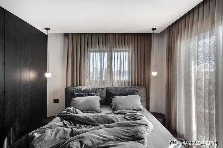 The design of this bedroom is concise and do not break sweet, the wall of warm gray lets the space appear more pure, do not have any redundant adornment. The line feeling of the droplight of the head of a bed is full, send out a downy yellow light, added a warm meaning for whole space. The design of the walk-in cloakroom is very practical. The reasonable layout makes it very convenient to take the clothes, bringing a comfortable experience to the owner. The whole bedroom is not only simple and generous, but also full of practical functionality and warm atmosphere, it is a very comfortable and livable space.