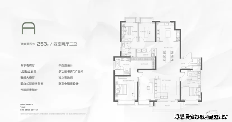 与市面上的多数高层住宅相比,「缦云上海」四叶草式户型布局,不仅户型均好性更强,更有利于空间独立和私密性,其空间尺度感与功能细节也是做到极致。