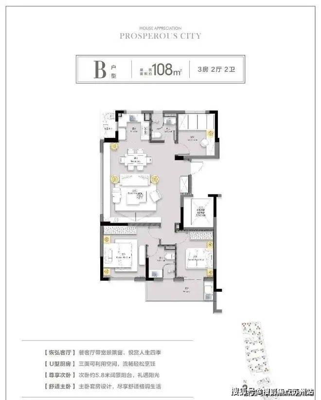 若是想住的舒服一点,建面约104㎡和建面约108㎡的户型也都是可以考虑的。