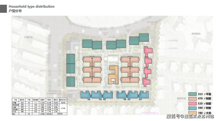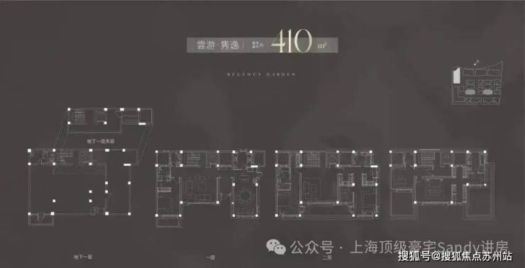 平层公寓面积段为134-350㎡、合计有45套,联排面积段为410㎡、430㎡、540㎡、560㎡、690㎡,合计有23套。