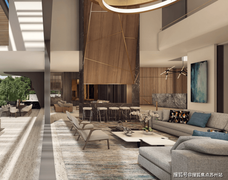 同源全球隐奢居住理念,“以安静取代喧哗、以自然取代浮华”,将避世居所、隐奢度假、艺术精神追求融合,营造拙朴沉稳、自然艺术的生活景致。三段式归家礼迎,格调森林院落景观,规制林荫雕塑花园、自然艺术花园、中心花园庭院,自然与空间交融,细绘移步风景、自然之美,赋予如云隐匿的悠然居所。